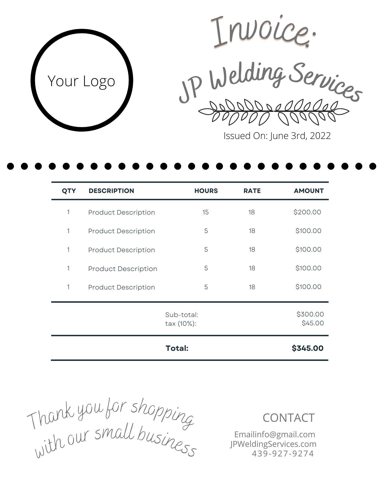 Custom 2-Part Invoice Form.